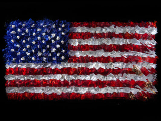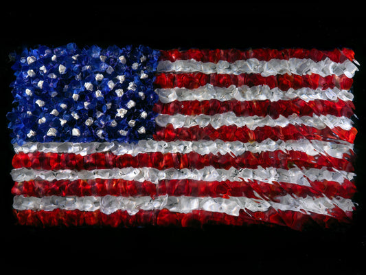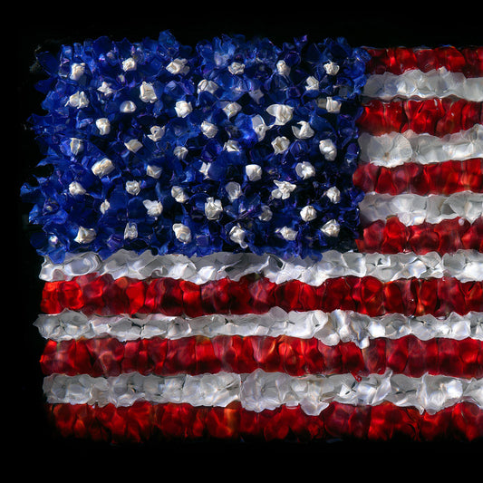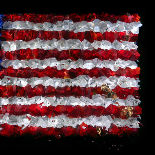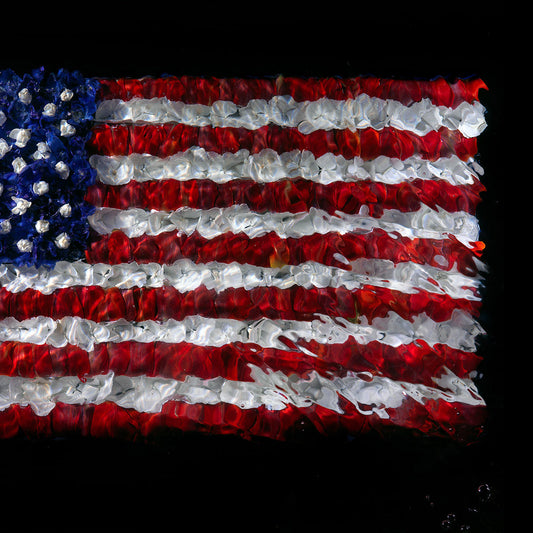In this series, Alexander James Hamilton reinterprets the American flag, a symbol historically laden with notions of unity, resilience and identity through the lens of contemporary vanitas. Constructed from thousands of real flower petals, each flag is meticulously assembled and then submerged underwater, capturing the ephemeral beauty and inherent fragility of the materials.