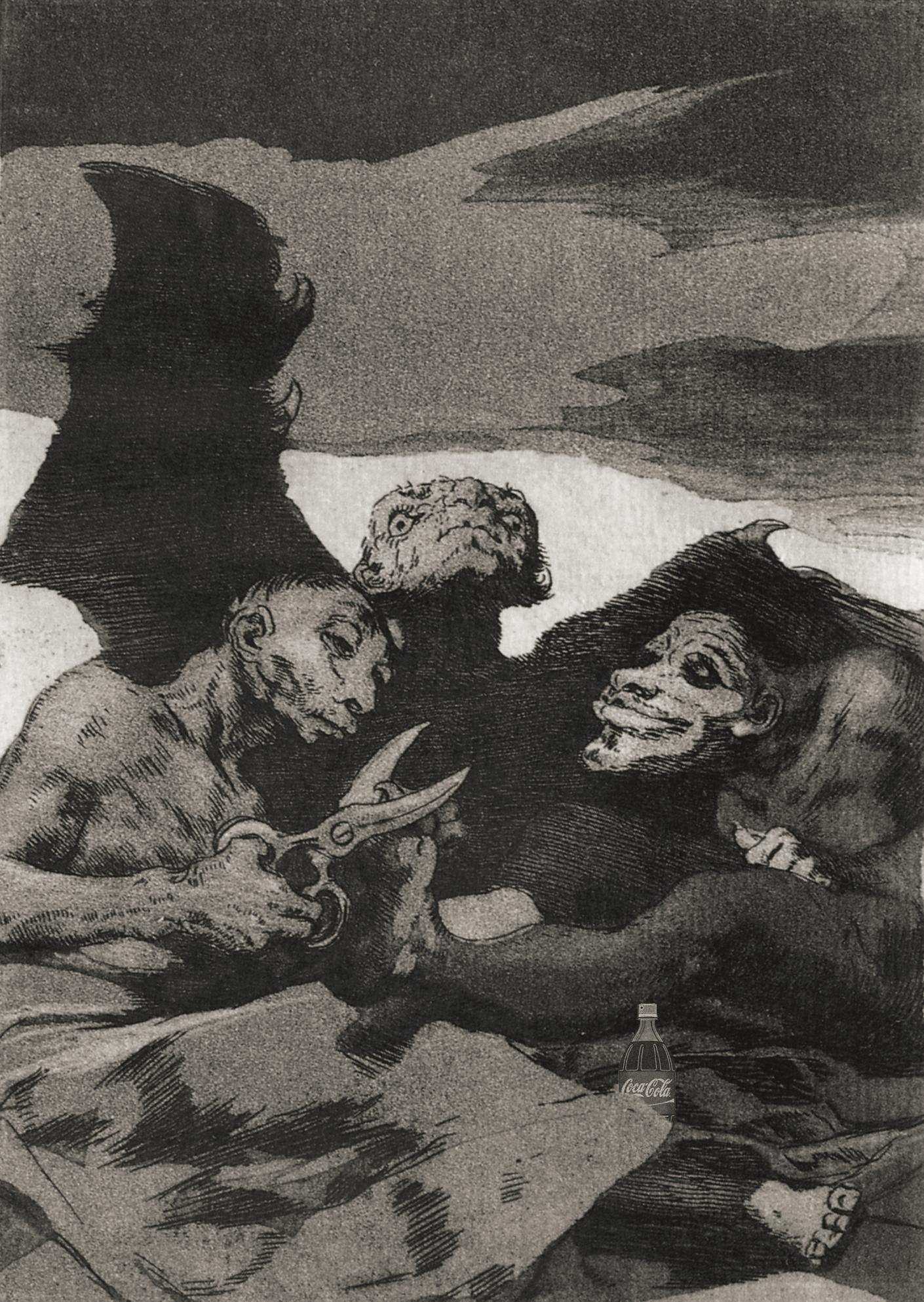Here a famous Goya print is reworked, now with the introduction of a coke within the scene. If Francisco De Goya were here today I am certain he would approve.